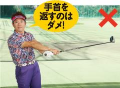 肩と腕の三角形を保って振り抜くことが重要。フォロー以降、クラブの遠心力によって手首が自然に返っていくのが理想的。意図的に返してはいけない。