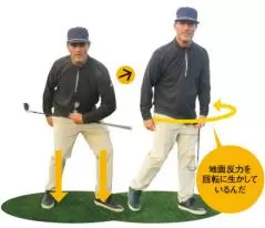 「体の回転が速くて力強い。これはダウンスイングでヒップターンするタイミングで体を沈ませる動作を入れ、地面を押して回転力をアップさせているからだと思う」