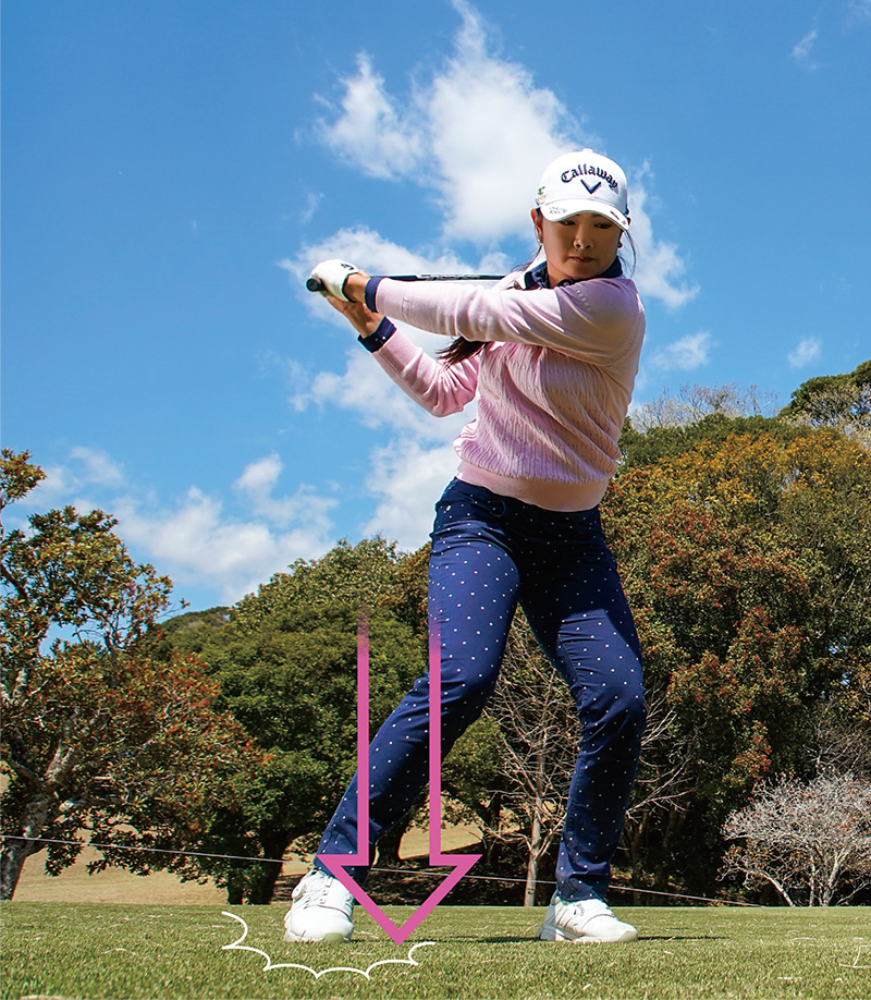 これが、平均飛距離240.21ヤード※のヒミツ|右足で踏み込み、伸び上がる力で回転する
