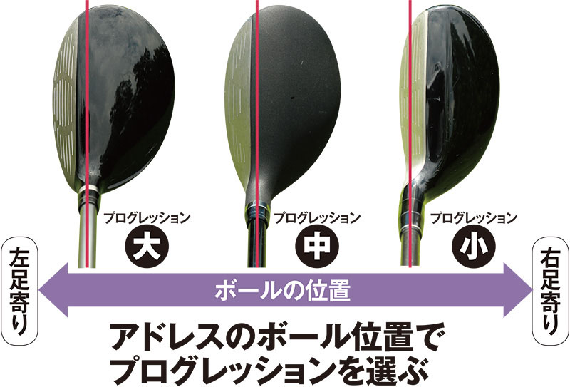 ロングアイアンの変わりにユーティリティを入れるのだから、やさしさはもちろん狙った方向に打てることが重要。アドレスのボール位置に対してプログレッションが大きすぎると右に飛びやすく、反対に小さすぎるとヒッカケやすくなるのが一般的。