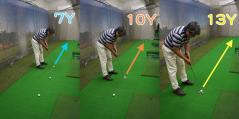 20分くらい練習を繰り返し、10ヤードの感覚の基準ができたら、「7ヤード」「10ヤード」「13ヤード」と3つの距離から打つ練習を繰り返しましょう。すると、10ヤード前後の距離を網羅的に練習することができます。