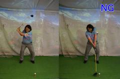 ご質問の方は、足腰を安定させることで飛距離アップを目指されています。確かに足腰の安定感はあった方がいいのですが、下半身を固めてしまうようなスイングは、体の回転も固めてしまい、手振り、手打ちになってしまいますから飛距離は伸びません。