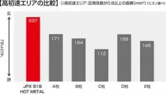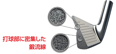 ミズノが誇る高度な鍛造技術である世界特許の「グレインフローフォージド製法」が進化。製造工程で発生するバリを削減することで、ヘッド内部の鍛流線を打球部に密集。その結果、さらに打球音が長く響くようになり打感が向上。