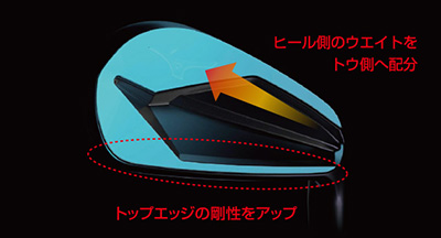 ヒール側のウエイトをトウ側へ配分することにより、スイートスポットをフェースセンター付近に配置。やや打点がバラついても、飛距離のロスを抑え、安定した方向性を発揮。さらに、トップエッジの剛性を高めることで、心地良い打球音を与えてくれる。
