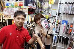 自分のゴルフクラブを揃えるため、予算5万円を握り締め「フェスティバルゴルフ新宿WING店」を訪れた初心者ゴルフ女子アイコ。山口店長にアドバイスをいただきながら、上達を見据えたクラブ選びの真っ最中です。