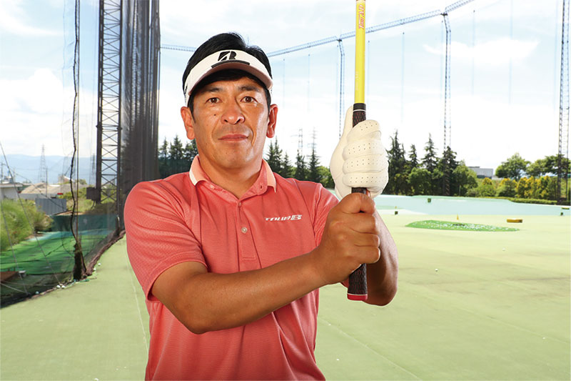 「手が強くなってるな」「スライスが出始めたな」と感じたときにオススメしたいのが、この「クロスハンド素振り」です。左右の手を入れ替えて振ることで、自動的に右ワキが締まって手がインサイドから下りてくるため、理想的な正しい軌道を手軽に体感することができます。