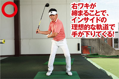 自動的に右ワキが締まって確実にインサイドからクラブを下ろせるから、ミート率が上がって飛ばせる!