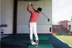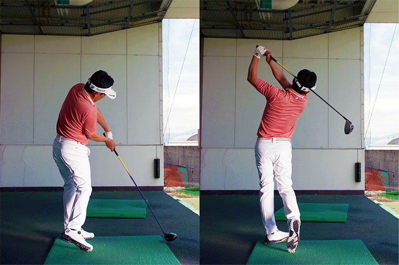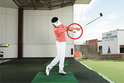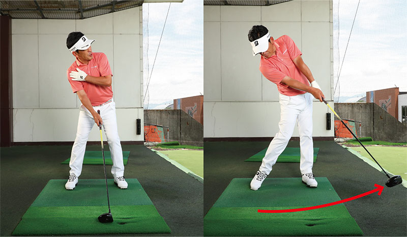 ② 無理なく上がるところまでバックスイングしたらいつものイメージで振るだけ!