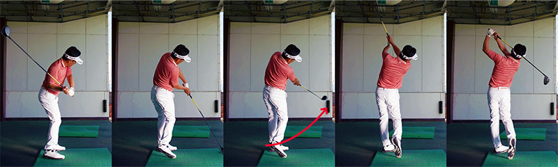 ここから体を回して前傾させれば理想のインパクトの形が完成。