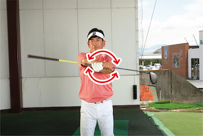 素振りドリル6.「クラブ回し振り」で、理想のリストターンを手に入れよう。