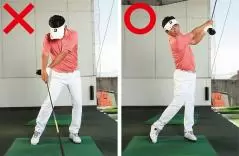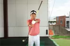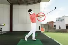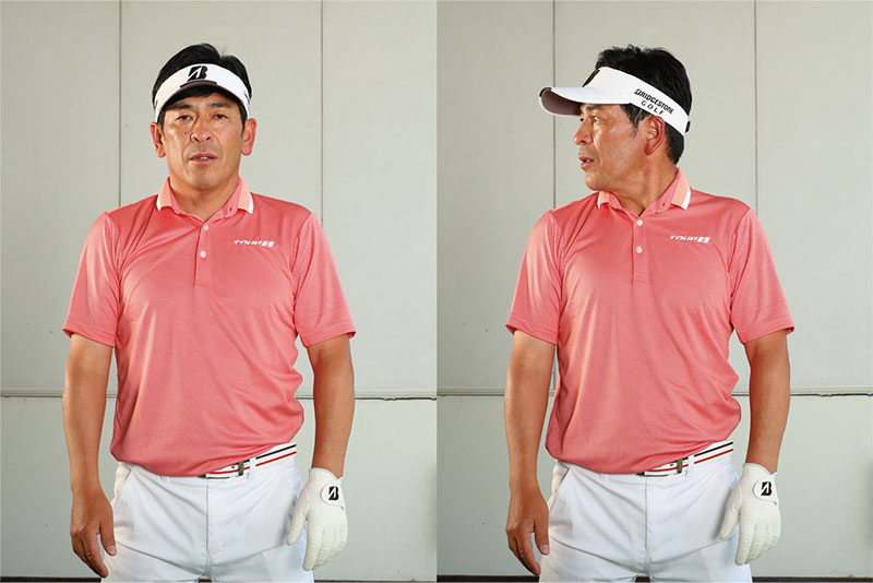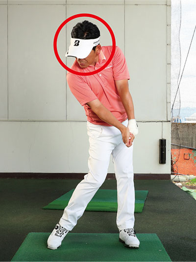 素振りドリル7.「左ほほ抑え素振り」で、ヘッドアップのクセを矯正しよう!