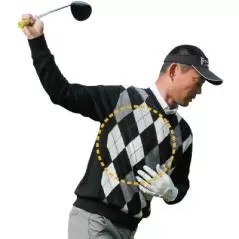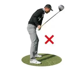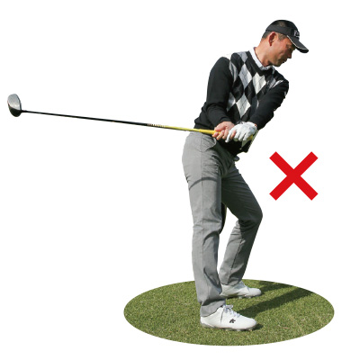 こうした悪癖を断ち切るには、シャフトを立てるイメージでダウンスイングするのがいいでしょう。垂直に立てて下ろすのではなく、飛球線の後方から見たときにクラブが右肩と右ヒジの間を通過するように、斜めの角度から下りてくるのが正しい動きです。