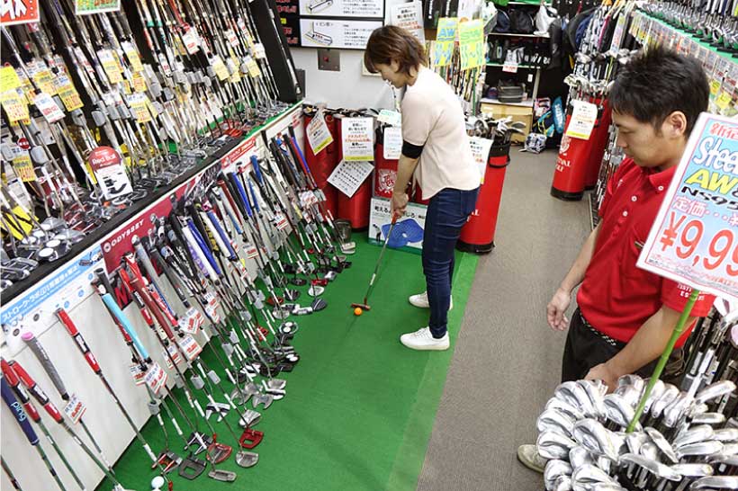 山口店長:ご予算に合わせて売価で5,000円〜7,000円の価格帯の新品パターを選んでみました。パターは数千円〜数十万円と一番値段の幅があるクラブです。中古でも4万円〜5万円のパターがあります。