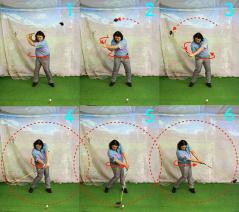 スイングについて、ご質問の方が「テイクバックを出来るだけ後方に真っ直ぐ引く」ようにされていますが、ドライバーが体の周りを円で回りますから、厳密にいうと体の後方に向かって回り出すイメージです。