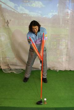しかし、ダウンスイングで腕から下ろしていると飛距離は伸びません。腕を使って軌道を調整するのは構いませんが、腕を使って下ろしたり打ったりしてはいけません。