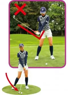ダウンブローで打とうとすると、大きなダフリや、近づきすぎて体が浮いてしまうトップが出たり、様々なミスになる可能性が大きくなってしまいます。