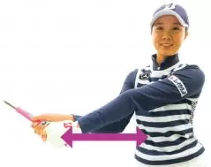 手元を体に引きつけなくても良いので、ダウンスイングでコックを極端に使う必要もなくなります。そこから半円を描くように体と手を一緒に回していきましょう。
