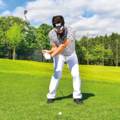 アウトサイドインとアッパー軌道はワンセット。アマチュアの方がダウンブローに打てないのは、大抵が“アウトサイドアッパー”になっているせいです。
