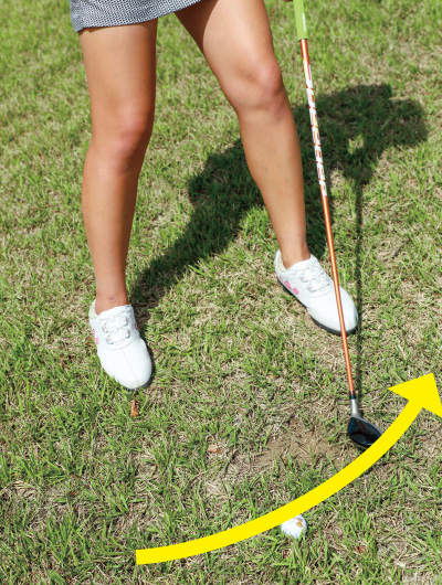 ツマ先下がりの状況は自然とクラブが上から入る
