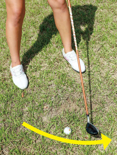 長い線をイメージするには"右足の前"でインパクト!