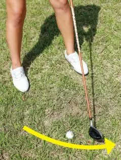 低く打ち出したいと思って、上から球を叩く方が多いと思います。簡単に言えば皆さんはやりすぎです。上から叩けば叩くほど、フォローでクラブはインサイドに引っ張られます。これが左右に飛び出てしまう原因なのです。
