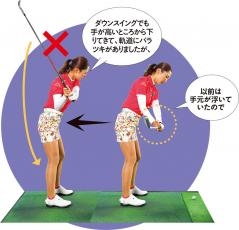 第1、2回で紹介した「アドレス改造」に続いて着手したのが、「テークバック時の手元の高さ」の修正。第3回で紹介したように、手元が高く上がるクセを、低く保って上げるように変更したという。第4回ではその目的とアマのマネどころを紹介!!