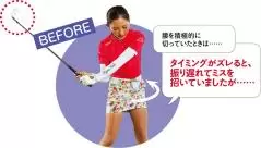 腰を早く切ることでスピーディに振りやすいメリットはあったが、タイミングがズレて振り遅れるとフェースが開き、そのまま当たればスライス、戻しすぎればヒッカケになることも。腰を止める意識を持つことで狂いが最小限に抑えられるようになった。