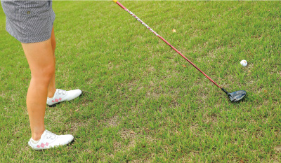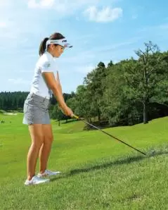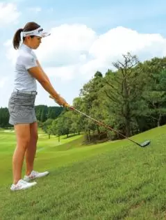 球をクリーンにヒットするために、「打つ」ではなく「滑らせる」イメージを持つことが大切です。ツマ先上がりの傾斜でのウッドだと、苦手意識のある方が多いと思いますが、この「滑らす」感覚をマスターできれば、とても簡単に球を前に飛ばすことができますよ。