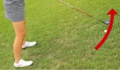 ツマ先上がり傾斜で1番気をつけてもらいたいのが手打ちになってしまうことです。その原因は下半身の動き。下半身は傾斜だと平らなライに比べて動きが鈍くなります。だから、自分でも気がつかないうちに手打ちになってダフってしまうことが多くなるのです。