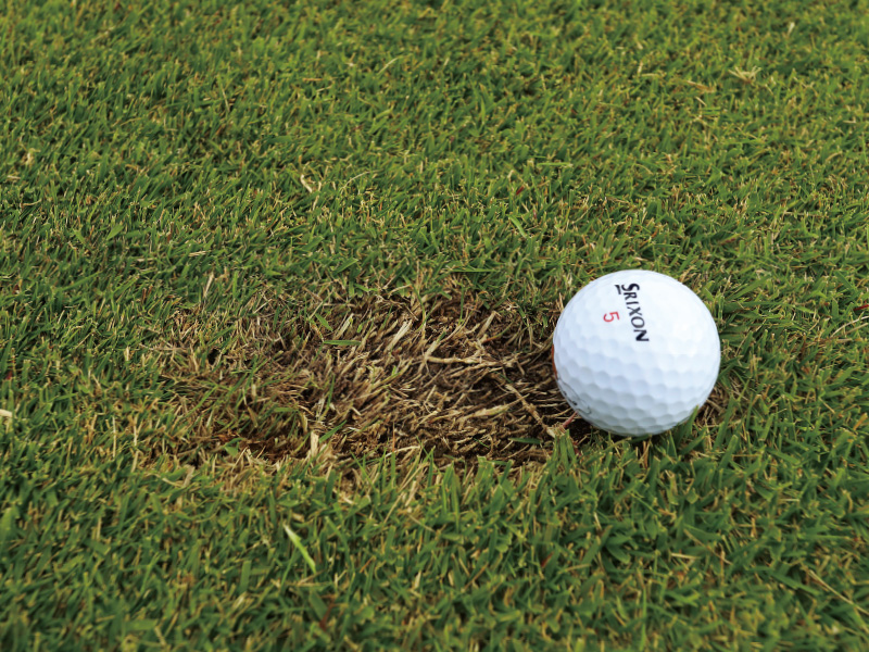 ディボット跡に負けない強い球で少しでも飛距離を稼ぐ