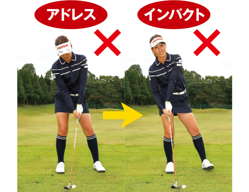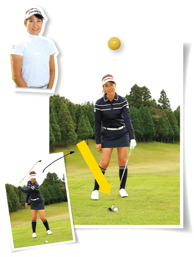 ディボット跡からしっかり前に飛ばしたいときは、上から叩きつけるようにインパクトするのが絶対条件になります。上からインパクトするために一番やってはいけない動きが、球をすくうようなスイングです。