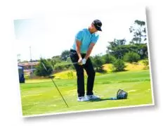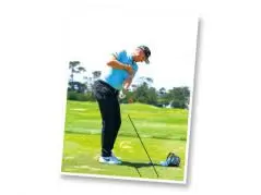 全米オープンの練習場にて。後方に立てたスティックよりも、クラブが内側(インサイド)にいかないように確認しながらハーフショットを打つローズ。