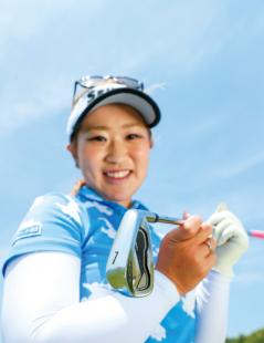 アウトサイドイン軌道で、フェースが開いたままインパクトしてしまうことがあるという鬼頭桜。そんな時は「地味だけど確実な練習」で調子を戻すという。