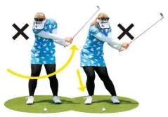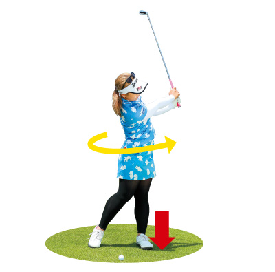 手だけでクラブを振ったり、合わせにいって右足に体重が残ってしまっては意味がありません。体をしっかりと使って、締まりのあるスイングをしましょう。