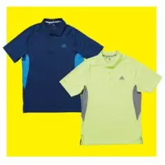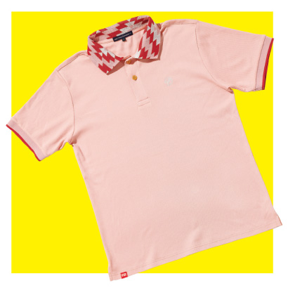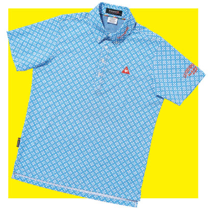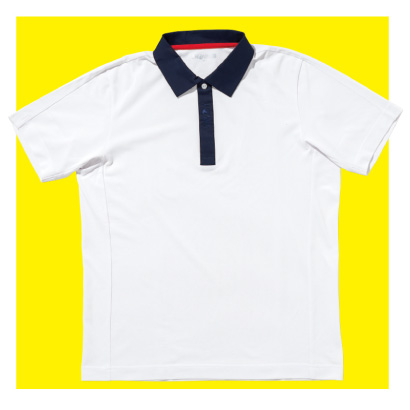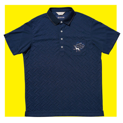 特殊プリーツ加工で、生地に凹凸をつけたポロ。水分があるとクーリング効果を発揮する素材「クールコア」使用。