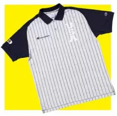 気化熱を利用して冷却する素材「クールコア」を用いた1枚。襟裏にはボーダー柄とメッセージロゴ入り。