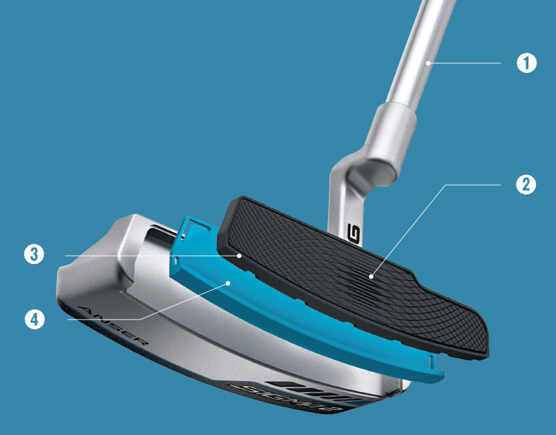 ❹ インサート内層はしっかりした打音と打感が得られるハードPEBAXを採用。ロングパットの距離感をサポート。