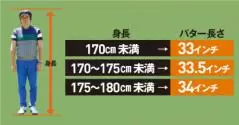 33.5インチは市販されていないことが多いので、34インチを0.5インチカットするか、0.5インチ=約1cm短く持つとよい。