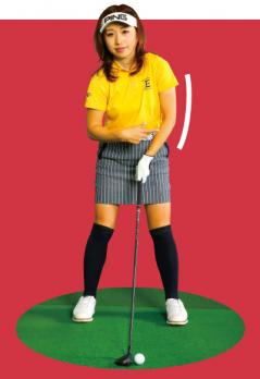 右手がかなり下になるので、アドレスでは左腕をたるませておく。