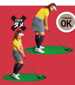 手でクラブを上げ下ろしするとダウンで手首が解けて体が起き、体が伸びて打ち込めない。正しく打てれば前傾キープでインパクトできている。