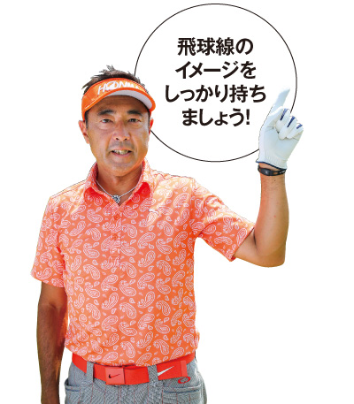 飛球線のイメージをどれだけ高められるかがカギ。ボールの近くにスパットを設定するといい。