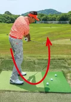 アウトサイドインに振れないような環境を作ることで軌道を簡単に修正できる。軽いインサイドアウトの軌道で打つのがベストだ。