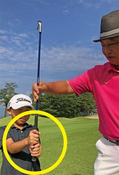 あわせて、大人の場合、インターロッキングかオーバーラッピングで握るのが一般的ですが、手の小さな子供は指をかけること自体が難しいもの。加えて握力も弱いため、両手ともしっかり5本の指でクラブを握れる「ベースボールグリップ」でスタートするのがオススメです。