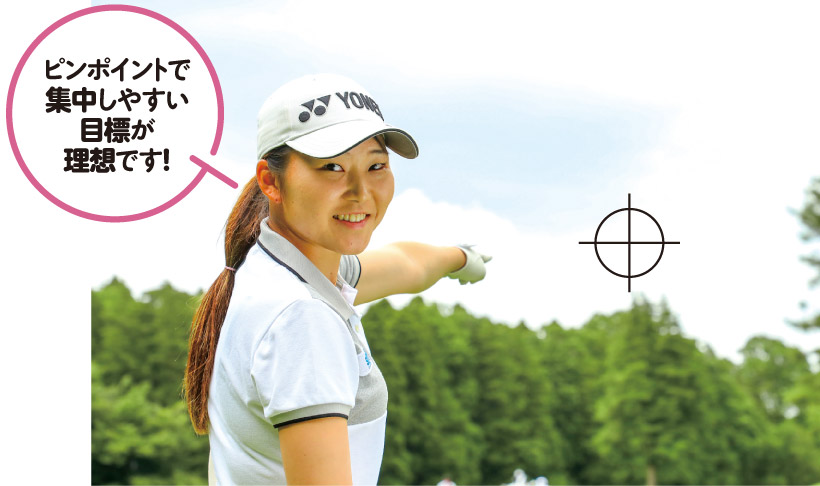 まずは目標を決める。遠くの木やバンカーでいいがピンポイントで集中しやすいものが理想。