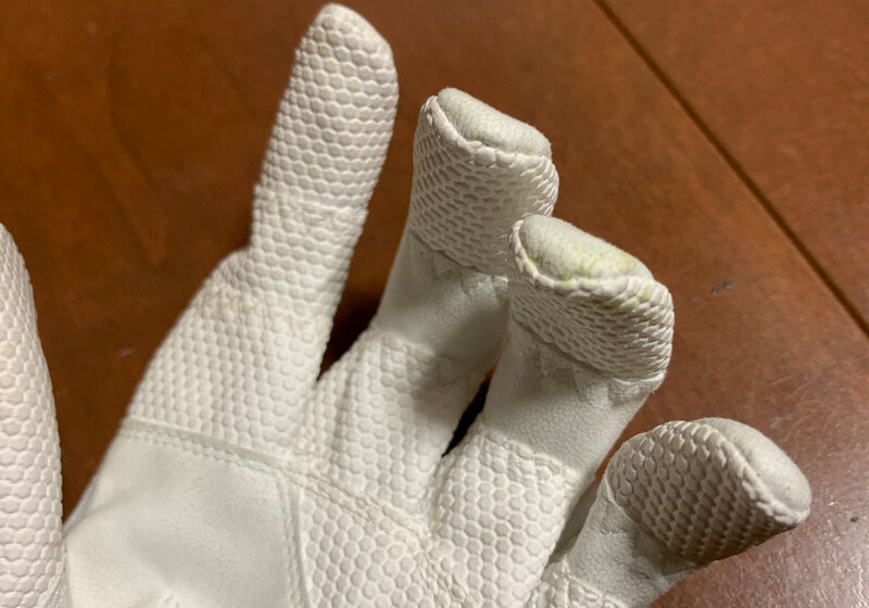 また、フィットする事でグローブに無駄なテンションがかからなくなり、結果としてグローブの耐久性も上がるとのこと。実験では練習で2000球打ってもほぼ無傷だったとか。こりゃコスパも高いですな。