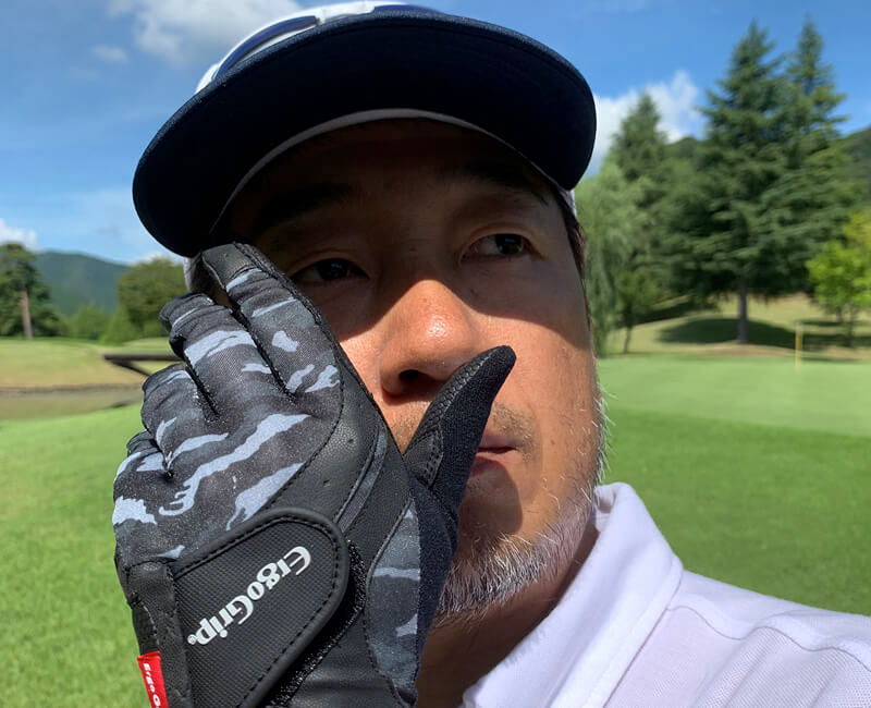 僕はパットの時はグローブを外すんですよ。やっぱ素手の方がパットの時には感覚が出しやすいってことが理由のひとつ。だけど、このエルゴフォースは少しだけ装着に時間がかかるので、パットの時にグローブを外したり着けたりがちょとだけ面倒なんです。