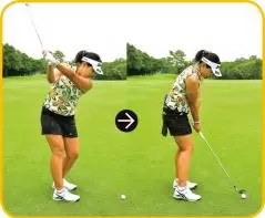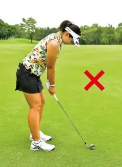 猫背気味だと、バックスイングで体が回らず手でクラブを上げ下ろしやすい。