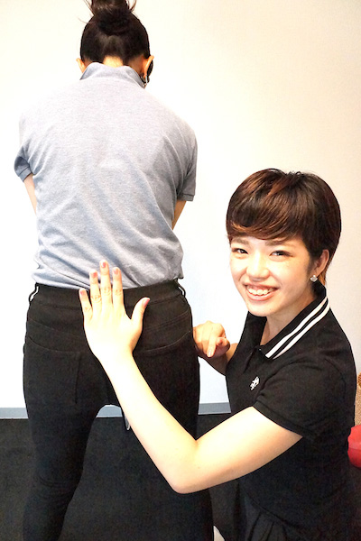 サポートを受けられる時は、下から順番に背骨をひとつずつ触ってもらうと意識しやすくなります。