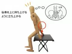 また、椅子に座っている状態から立ち上がる時、足で踏ん張るより、仙骨を上に持ち上げるように立ち上がると、すっと軽く立ち上がることができます。