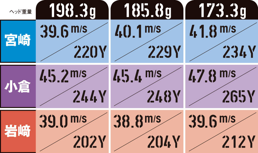 結果は、3人とも意外なほどヘッドスピードに変化はなかった。ただし、つかまり具合や振り心地には違いがあったという。
